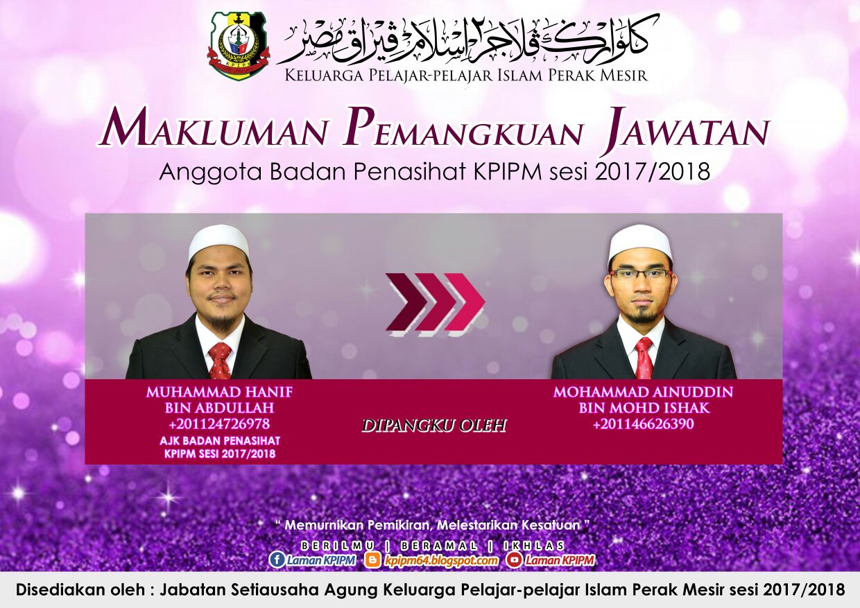 MAKLUMAN | PEMANGKUAN JAWATAN AHLI JAWATANKUASA HEWI & ANGGOTA BADAN PENASIHAT KPIPM SESI 2017/2018